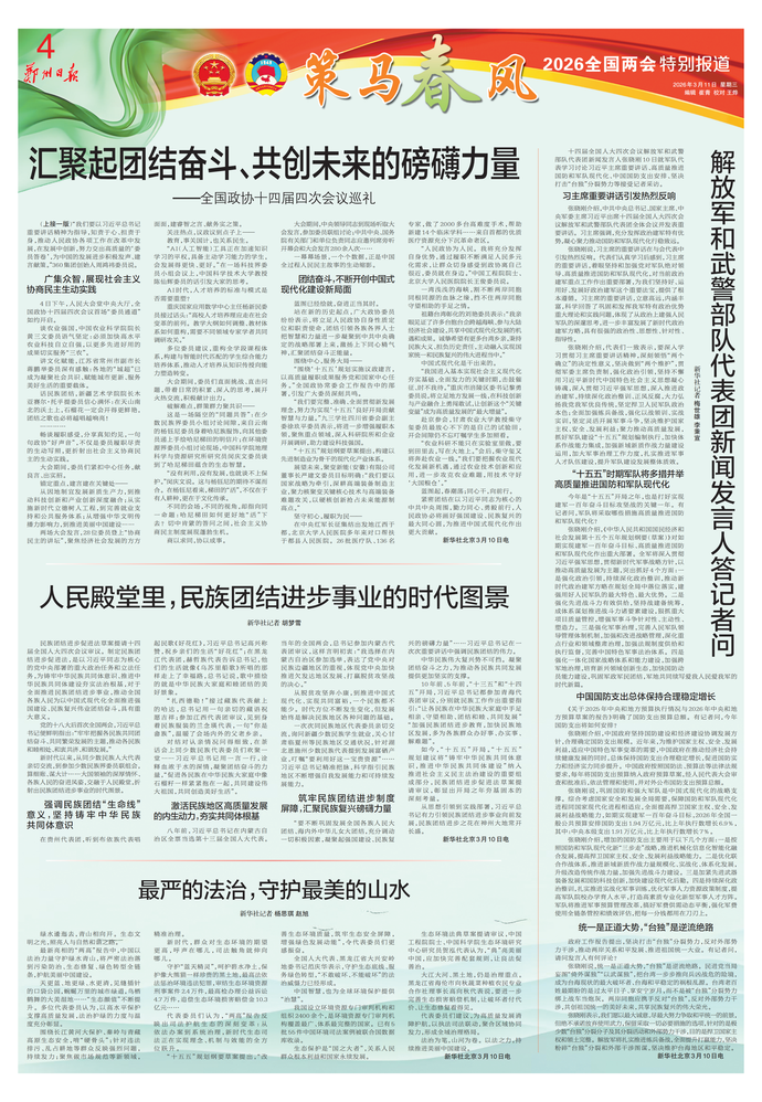 十四届全国人大四次会议各代表团11日上午举行全体会议,审议全国人大常委会工作报告、最高人民法院工作报告、最高人民检察院工作报告。下午,各代表团举行代表小组会议,审议关于政府工作报告、“十五五”规划纲要、年度计划、年度预算的四个决议草案;召开主席团第三次会议。(今日《郑州日报》1版)