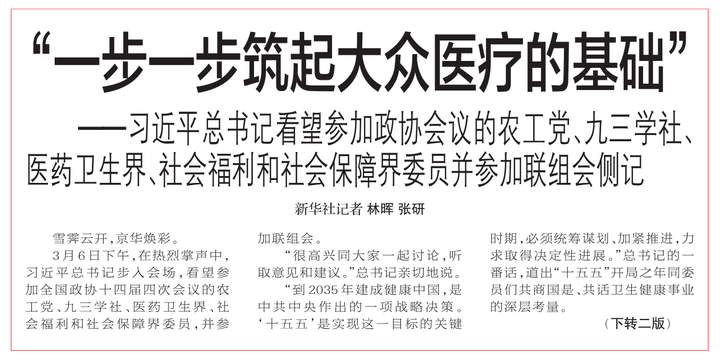 ——习近平总书记看望参加政协会议的农工党、九三学社、医药卫生界、社会福利和社会保障界委员并参加联组会侧记