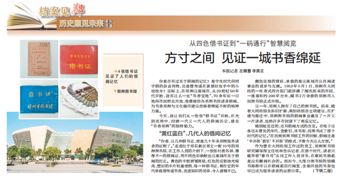 你是否有过关于借阅的记忆?是学生时代向同学借的杂志刊物,还是曾传递在亲朋好友手中的小说绘本?实际上,在郑州这座城市,从20世纪50年代开始,就有这么一处“书香宝地”,70余年如一日地向市民群众开放,免费提供各类图书供读者借阅,为书香郑州与文化强市建设贡献着绵延不断的精神力量。(今日《郑州日报》1版、2版)