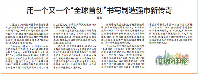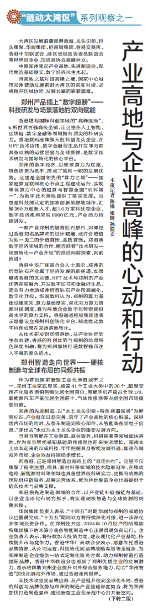 中原郑州隆起产业高地,先进制造业、现代物流基础厚实,数字经济风生水起。(今日《郑州日报》1版、2版)