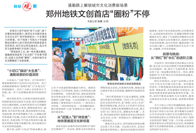 在每日川流不息的“地下之城”,除了步履匆匆的赶路人,能否生长出新的商业与文化生态?郑州地铁给出一个充满活力的答案。位于地铁1号线与4号线换乘站会展中心站厅层的郑州地铁首家文创实体店,自开业以来迅速走红,成为市民与游客争相打卡的热门站点。(今日《郑州日报》6版)