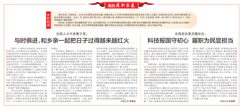 作为两届全国政协委员,郑州轻工业大学校长魏世忠始终以科研工作者的使命、教育工作者的初心,践行着政协委员“为国履职、为民尽责”的庄严承诺,在科技攻关、教育发展、民生建言的道路上步履不停,书写着新时代政协委员的履职答卷。(今日《郑州日报》2版)