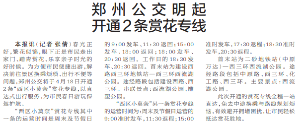郑州公交明起开通2条赏花专线