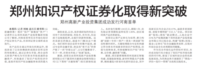 郑州知识产权证券化取得新突破