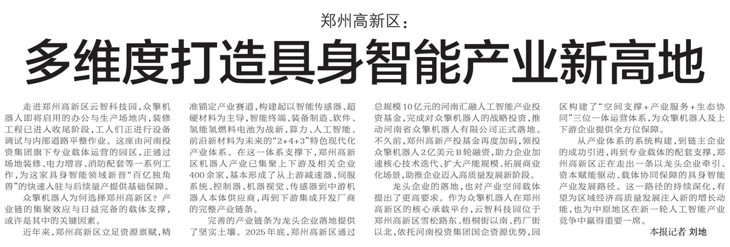 走进郑州高新区云智科技园,众擎机器人即将启用的办公与生产场地内,装修工程已进入收尾阶段,工人们正进行设备调试与内部道路平整作业。这座由河南投资集团旗下专业载体运营的园区,正通过场地装修、电力增容、消防配套等一系列工作,为这家具身智能领域新晋“百亿独角兽”的快速入驻与后续量产提供基础保障。(今日《郑州日报》7版)