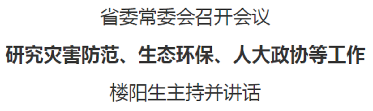 12月18日,省委常委会召开会议,传达学习习近平总书记对低温雨雪冰冻灾害防范应对工作作出的重要指示,研究灾害防范、生态环保、人大政协、省委十一届六次全会暨省委经济工作会议筹备等工作。省委书记楼阳生主持并讲话。