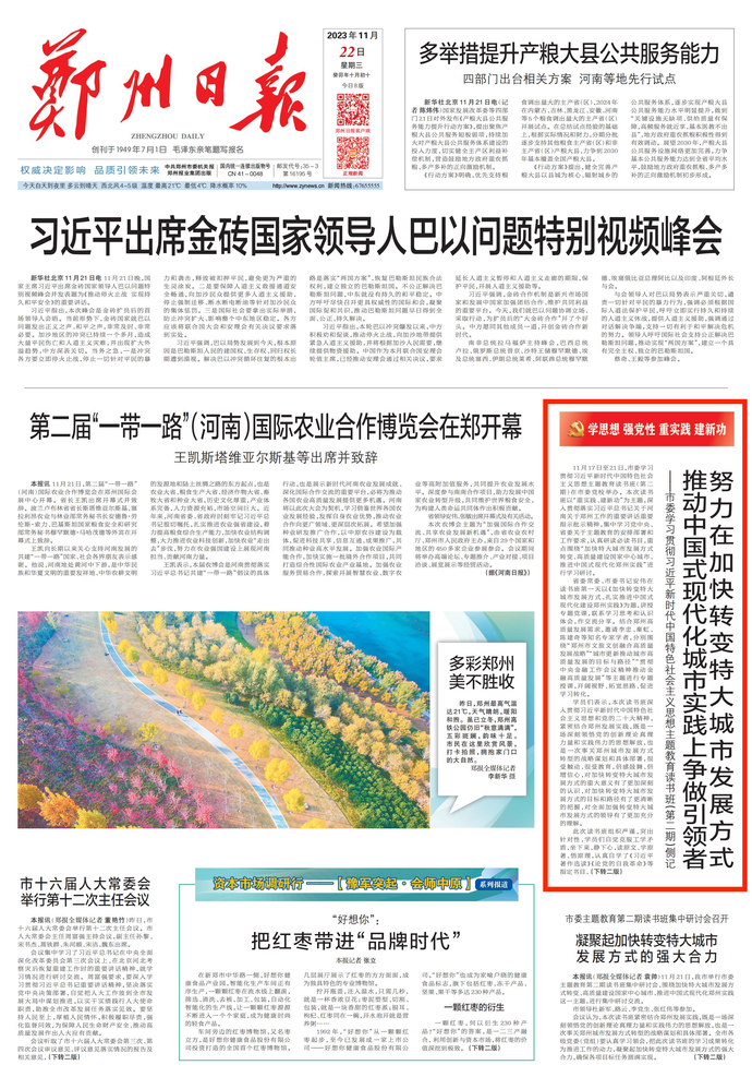 读书班第二期结束后,学员们表示,要持续在学懂弄通做实习近平新时代中国特色社会主义思想上下更大功夫,着力把主题教育成效转化为推动郑州经济社会高质量发展的强大动力,努力在加快转变特大城市发展方式、推动中国式现代化城市实践上争做引领者,向中央、省委和全市人民交出份优异答卷。